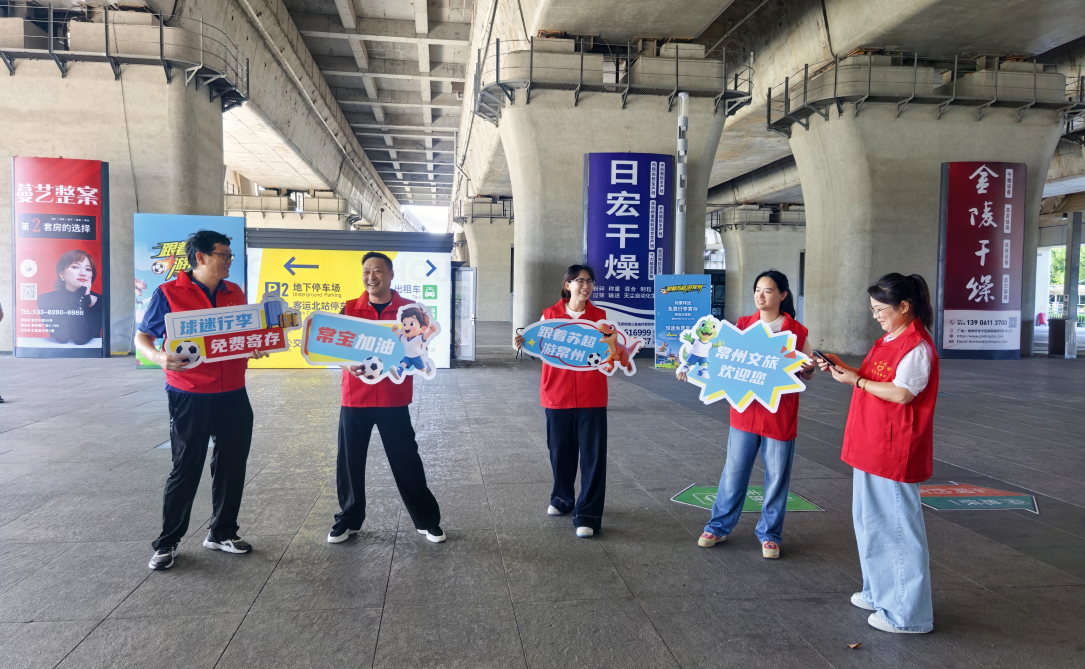 志愿者在火車站熱情迎接球迷的到來。中國經(jīng)濟(jì)網(wǎng)宋雅靜/攝