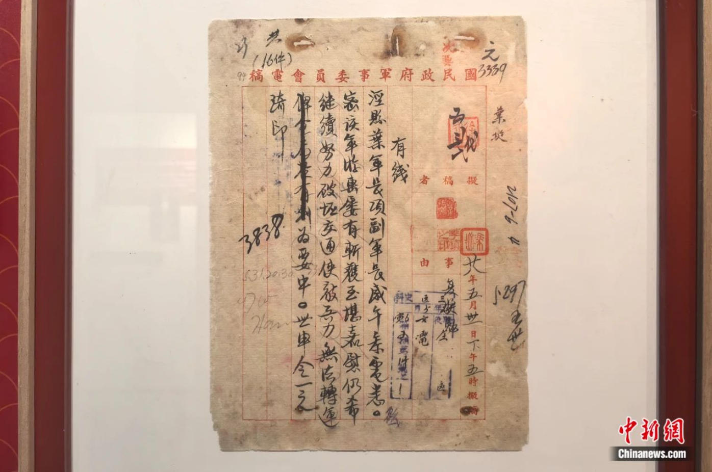 蔣介石第一次給葉挺軍長、項(xiàng)英副軍長的嘉獎(jiǎng)令。張強(qiáng) 攝
