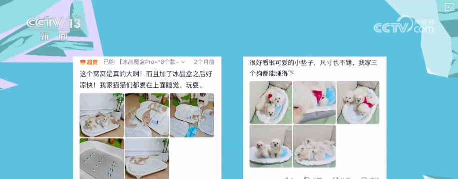 高溫還催熱了“它經(jīng)濟(jì)”。在網(wǎng)購平臺(tái)上搜索關(guān)鍵詞“寵物降溫”,寵物空調(diào)房、冰墊、冰絲圍巾、寵物專用空調(diào)等商品琳瑯滿目。一件30塊錢左右的基礎(chǔ)款寵物冰墊,月銷量輕松破萬。可調(diào)節(jié)風(fēng)速的寵物風(fēng)扇、能自動(dòng)制冷的寵物窩等,同樣備受追捧。評(píng)論區(qū)的畫風(fēng)是這樣的“狗狗非常喜歡,玩得不亦樂乎”“貓咪睡覺終于踏實(shí)了”“家里的娃和毛孩子都很喜歡”。