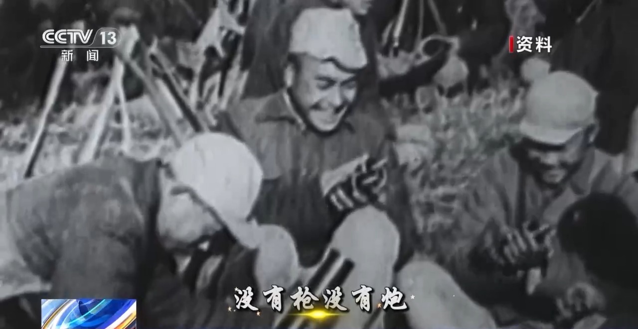 沒(méi)有吃,沒(méi)有穿,自有那敵人送上前,沒(méi)有槍?zhuān)瑳](méi)有炮,敵人給我們?cè)臁?/p>