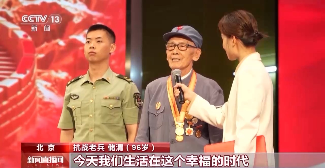 抗戰(zhàn)老兵 儲渭(96歲):我當兵的時候不到15歲,現(xiàn)在老戰(zhàn)友已經不太多了。經歷了14年的抗日戰(zhàn)爭,今天我們生活在幸福的時代,這是黨的關懷,這是我們不能忘記的。