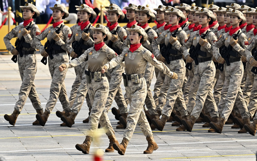 民兵方隊全部由女民兵組成。這是民兵首次亮相以紀(jì)念抗戰(zhàn)勝利為主題的閱兵活動。