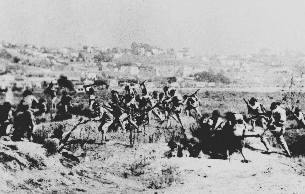 1937年8月13日,淞滬會(huì)戰(zhàn)爆發(fā)。這是中國(guó)軍隊(duì)在閘北八字橋攻擊日軍。新華社發(fā)