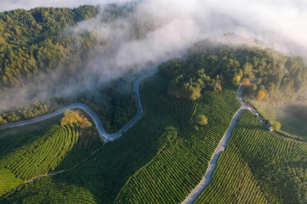 2024年11月8日拍攝的位于安徽省宣城市旌德縣三溪鎮(zhèn)的農(nóng)村公路(無(wú)人機(jī)照片)。新華社記者 曹力 攝