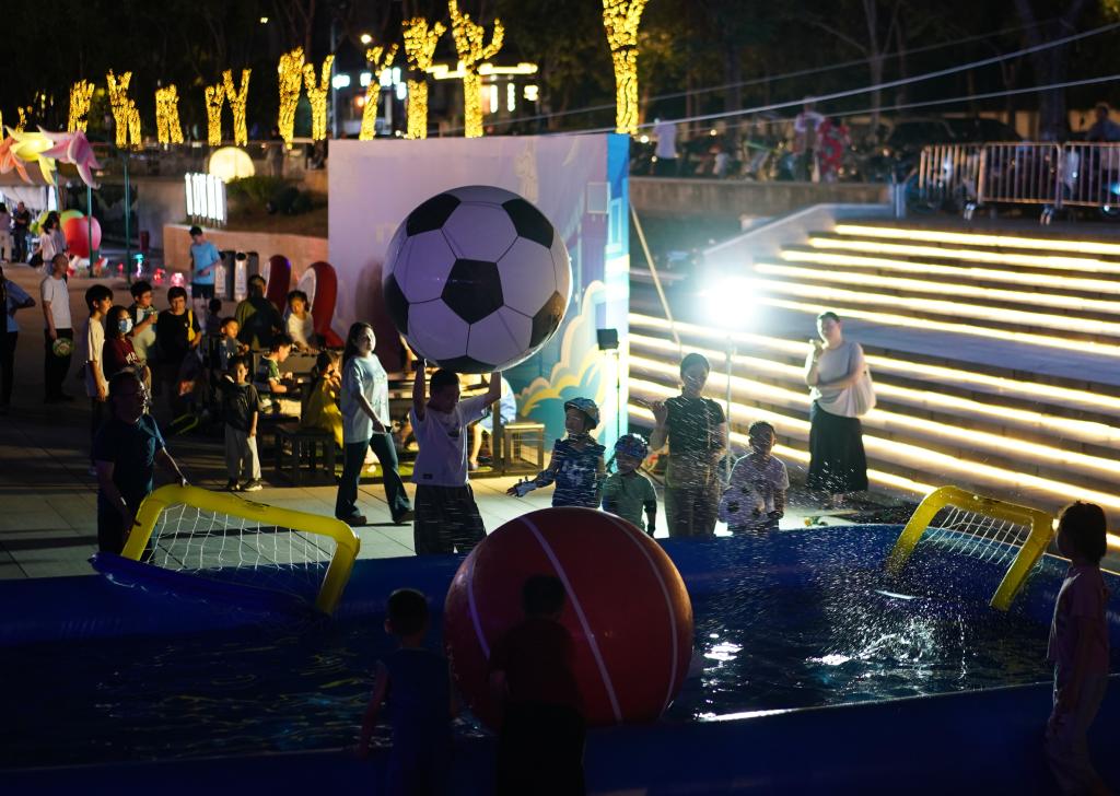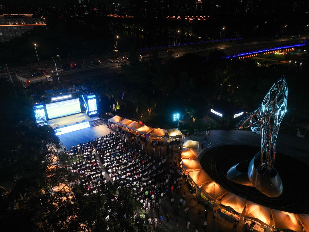 8月17日,在江蘇南京舉行的2025江蘇省城市足球聯(lián)賽第九輪比賽中,南京隊(duì)對陣鹽城隊(duì)。南京市在部分商場、街區(qū)等地設(shè)置觀賽“第二現(xiàn)場”,使用大屏幕同步直播賽事,同時設(shè)有游戲互動區(qū)、煙火市集區(qū),讓球迷們度過歡樂時光。新華社記者 季春鵬 攝