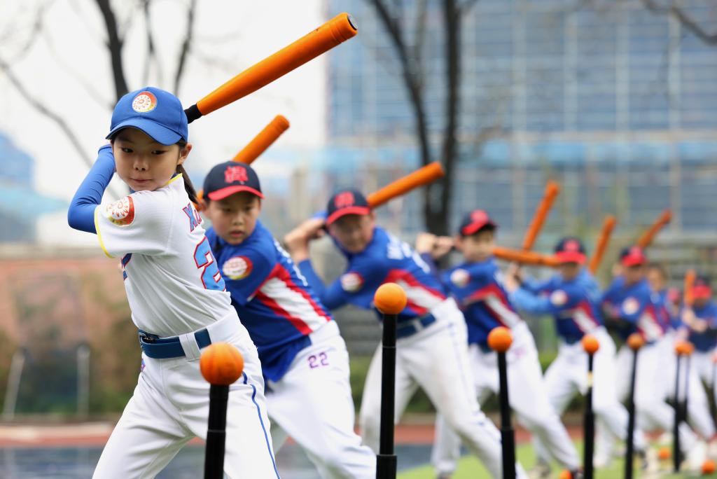 圖為2023年3月23日,在合肥市元一名城小學,學生在進行軟式棒壘球訓練。新華社發(fā)(解琛 攝)
