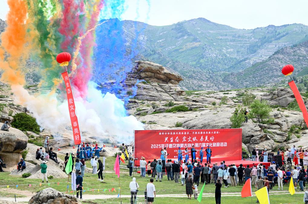 這是2025年5月24日拍攝的新疆阿勒泰市汗德尕特蒙古族鄉(xiāng)第六屆文化旅游活動(dòng)現(xiàn)場(chǎng)。新華社記者 王菲 攝