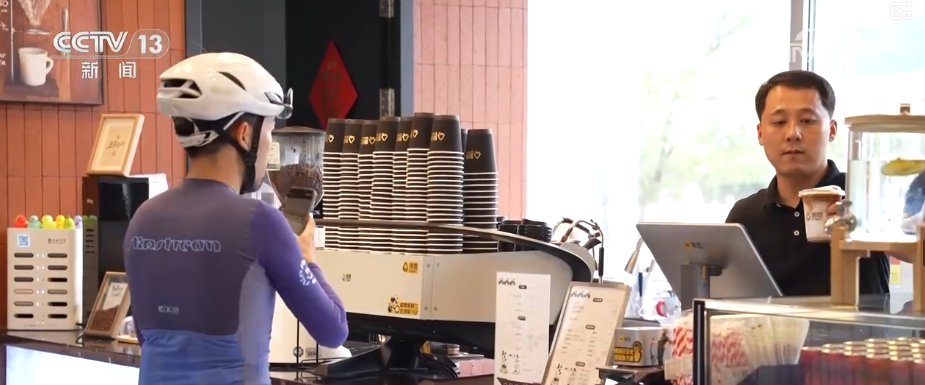 北京某騎行商店負(fù)責(zé)人宋先生介紹,他們配備了餐飲、咖啡,包括休閑區(qū)域,給整個(gè)騎行的騎友打造了一個(gè)全場(chǎng)景的休閑區(qū)域。