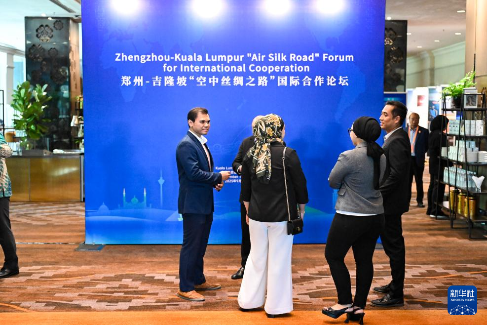 9月18日,馬來(lái)西亞吉隆坡國(guó)際機(jī)場(chǎng)舉行的鄭州-吉隆坡“空中絲綢之路”國(guó)際合作論壇開(kāi)始前,嘉賓們?cè)跁?huì)場(chǎng)外交流。新華社記者 程一恒 攝