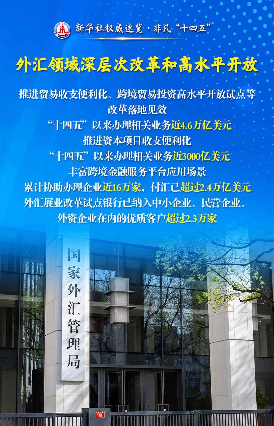 22日舉行的“高質量完成‘十四五’規(guī)劃”發(fā)布會上,中國人民銀行、金融監(jiān)管總局、中國證監(jiān)會、國家外匯局介紹“十四五”時期金融業(yè)發(fā)展成就:金融體制改革全面深化,金融強國建設邁出堅實步伐,資本市場健康穩(wěn)定發(fā)展的態(tài)勢持續(xù)形成并不斷鞏固,外匯領域穩(wěn)步推進高水平開放……跟隨海報,一起了解。