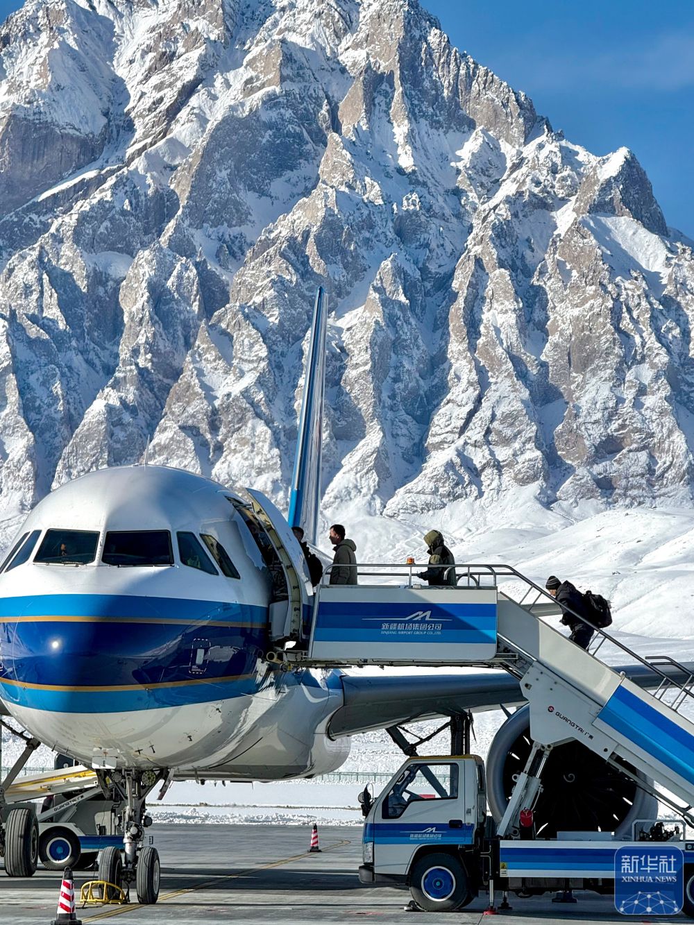↑1月13日,旅客在塔什庫爾干紅其拉甫機場準備登機。
