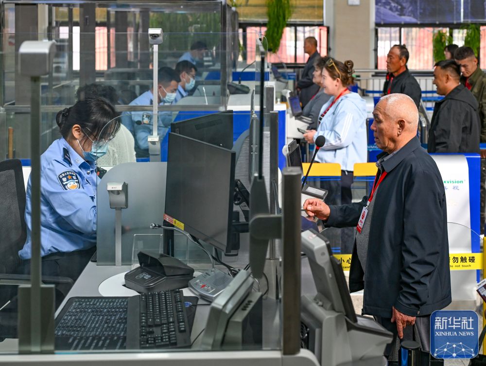 ↑9月17日,巴克圖出入境邊防檢查站的移民管理警察在為來自哈薩克斯坦的旅客辦理入境手續(xù)。