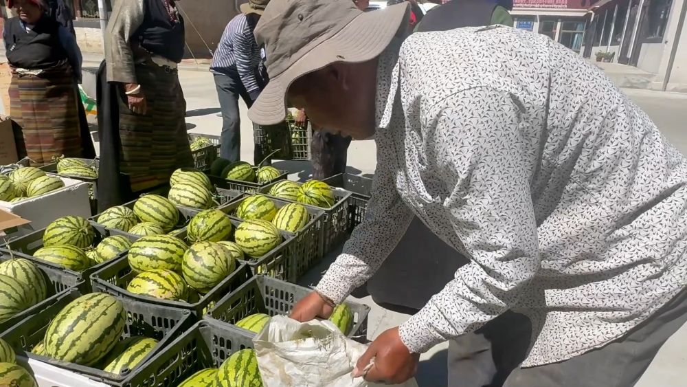 9月,在西藏日喀則市桑珠孜區(qū)年木鄉(xiāng)羅林村,曬場上一派繁忙景象。村民們排起隊伍,與收購人員并肩協(xié)作,將一個個圓滾滾的大西瓜挨個過秤、裝車,7000斤西瓜被一次性收購。