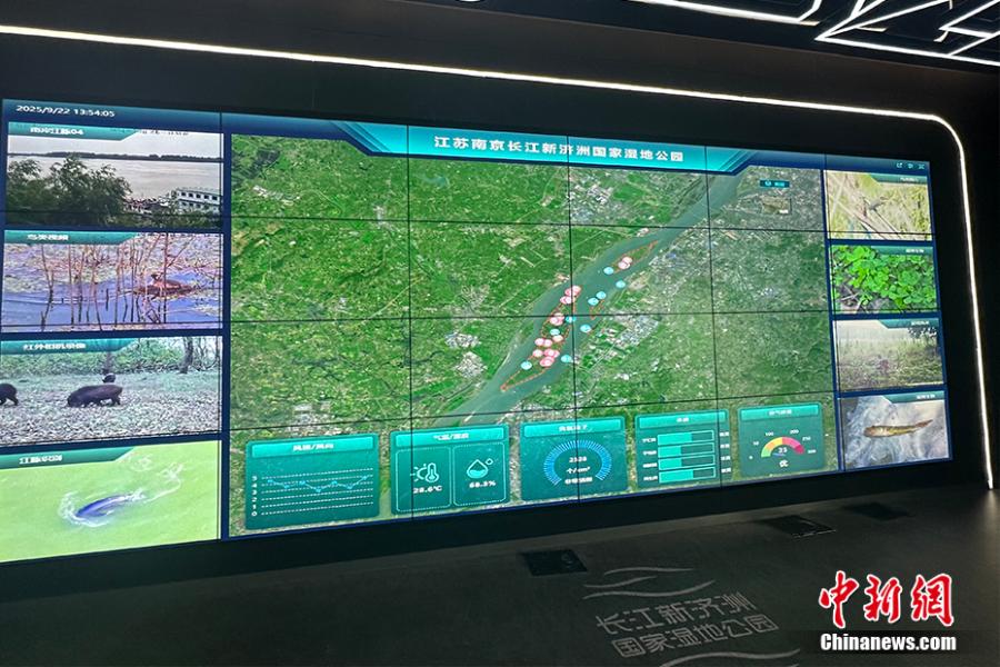 南京長江新濟(jì)洲國家濕地公園內(nèi)的智慧大屏。高萌 攝