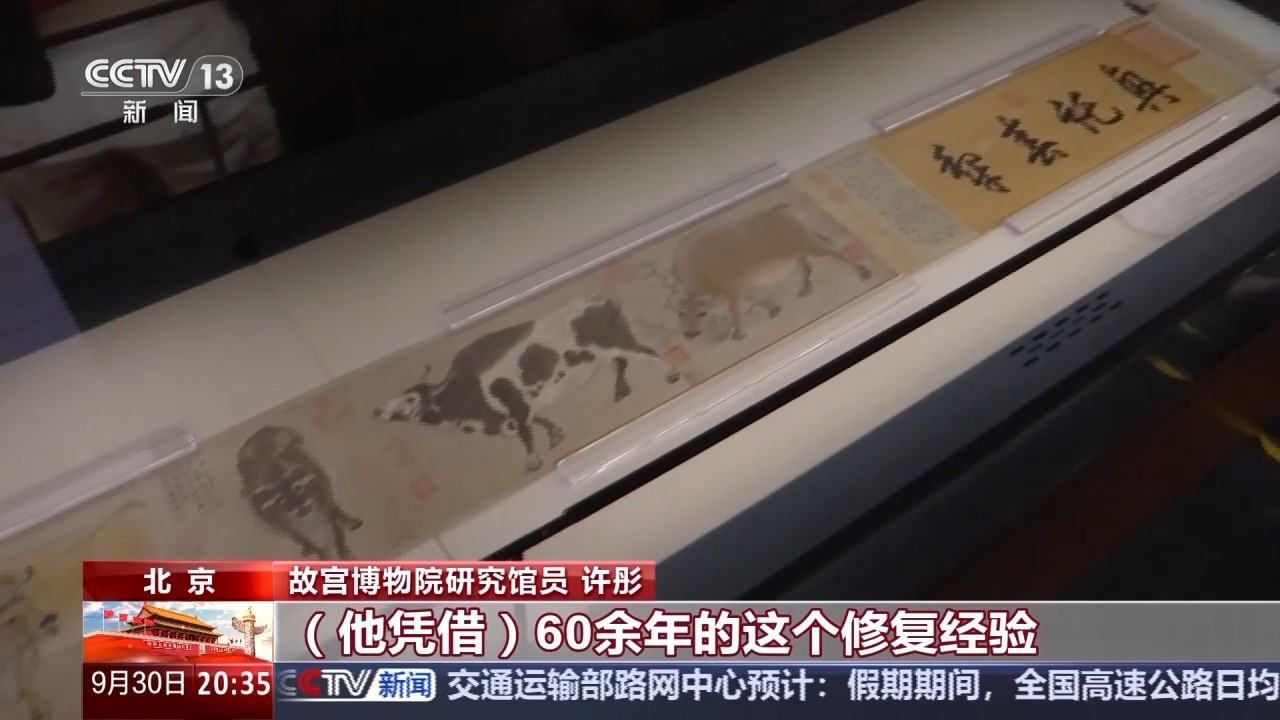 故宮博物院研究館員 許彤:它上面大小破洞應(yīng)該有300多處,非常殘破。后來,修復(fù)專家孫承枝老師憑借其60余年的修復(fù)經(jīng)驗(yàn),通過揭裱、修補(bǔ)、全色又重裝,最終讓國(guó)寶重光,獲得新生。