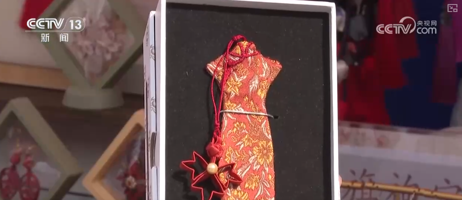 在非遺八大集市上,有許多精致的小物件,比如這枚小書簽,別看它小,可是凝結(jié)了三項(xiàng)非遺技藝,包括京式旗袍傳統(tǒng)制作技藝、京繡技藝,以及盤扣制作技藝,亮點(diǎn)多多,十分的精致。