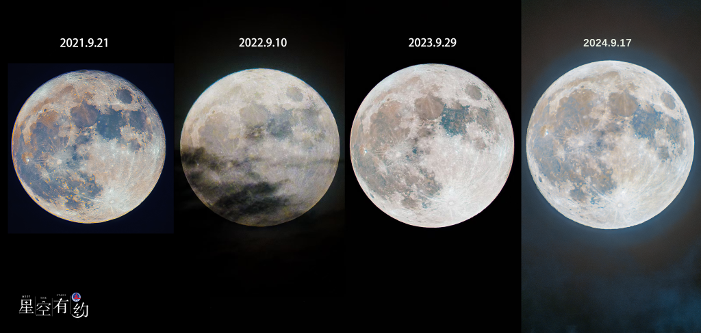 連續(xù)四年在廣西南寧市拍攝的中秋月特寫(拼版)。(王晉 攝)