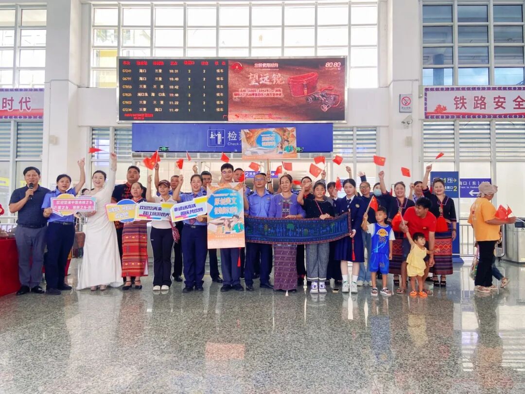 10月2日,當(dāng)《如愿》的前奏在??谲噭?wù)段棋子灣站候車廳奏響時(shí),旅客們放慢了腳步。一場由車站與昌江縣文化館共同舉辦的“非遺進(jìn)高鐵,國慶共歡騰”快閃活動(dòng),把“山海黎鄉(xiāng)”的文化肌理,融入“我的鐵路風(fēng)景” 故事匯的秋日篇章里。