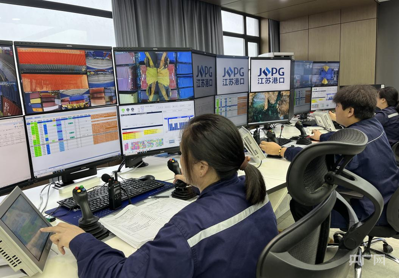 工作人員遠(yuǎn)程操作集裝箱(央廣網(wǎng)記者 欒永勝 攝)