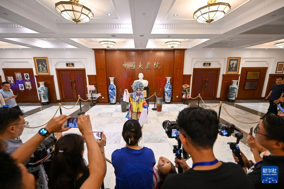 演員在位于天津的中國(guó)大戲院為觀眾帶來(lái)戲曲快閃表演(10月1日攝)。新華社記者 孫凡越 攝