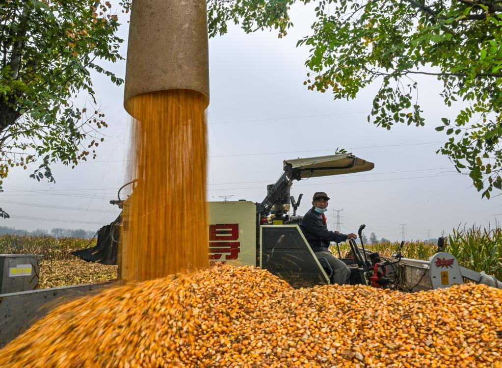 2025年10月8日,河南省商丘市夏邑縣會亭鎮(zhèn)郭樓村農(nóng)民駕駛收割機收獲玉米。新華社發(fā)(王高超 攝)