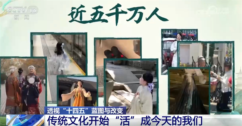 央視網(wǎng)消息:過去,我們在課本里背古詩、學(xué)歷史;今天,我們身著漢服走上街頭,在旅行打卡、短視頻創(chuàng)作中重新感受傳統(tǒng)。五千年的文化正在從書頁走向街頭,從展廳走進(jìn)生活,成為我們?nèi)粘5囊徊糠帧!笆奈濉钡奈迥辏屛幕嬲盎睢痹诹水?dāng)下,也“活”進(jìn)了我們的生活。
