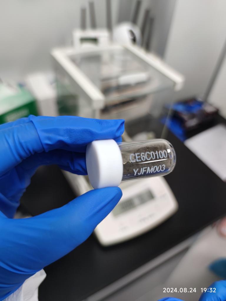 2024年8月24日,在中國科學院廣州地球化學研究所實驗室內(nèi)拍攝的月壤樣品。(中國科學院廣州地球化學研究所供圖)