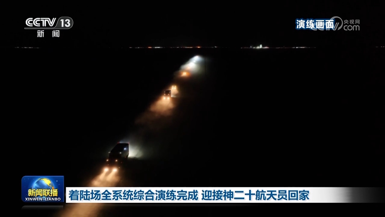 央視網(wǎng)消息(新聞聯(lián)播):神舟二十號乘組將于近日擇機(jī)返回東風(fēng)著陸場。11月2日晚,著陸場區(qū)組織所有搜救力量,進(jìn)行了最后一次全系統(tǒng)綜合演練。