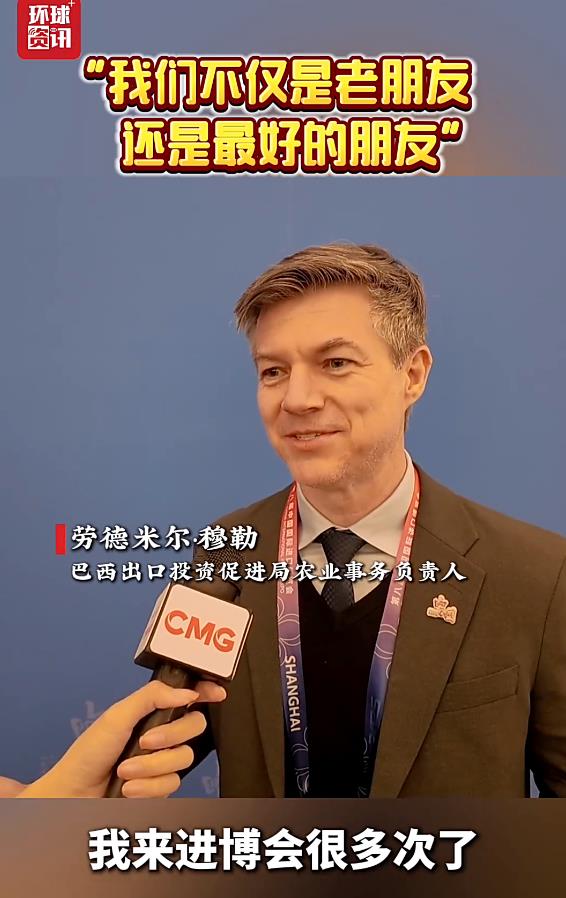 巴西出口投資促進局農(nóng)業(yè)事務(wù)負責(zé)人勞德米爾·穆勒接受總臺環(huán)球資訊廣播記者采訪時表示,巴西每年都積極參與進博會,不僅是進博會的老朋友,更是最好的朋友。