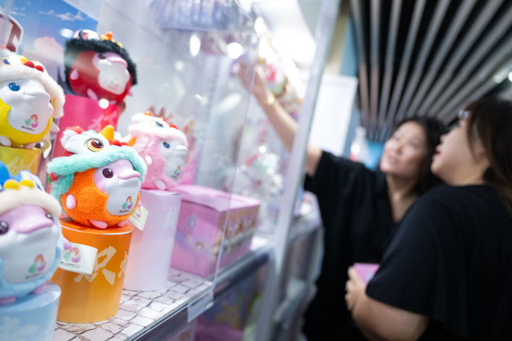 8月1日,市民在十五運會和殘?zhí)貖W會澳門賽區(qū)官方特許商品零售店選購。新華社發(fā)(張金加攝)