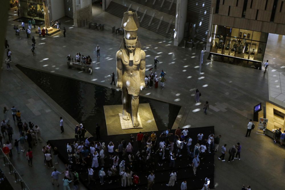 11月4日,大埃及博物館正式向公眾開放。這是古埃及法老拉美西斯二世巨像。新華社發(fā)(艾哈邁德·戈馬攝)