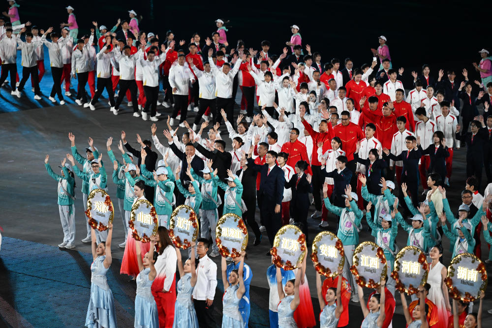 漫天星輝閃耀時,萬千豪情競風流。馬龍、潘展樂、蘇炳添、王霜……熟悉的面孔接連出現(xiàn),來自五湖四海的運動員、教練員和裁判員一同入場。