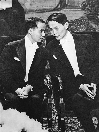 1957年瑞典斯德哥爾摩,諾貝爾物理學(xué)獎(jiǎng)獲得者楊振寧和李政道。來(lái)源:清華大學(xué)官方微博