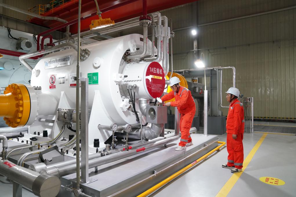 2025年7月9日,在“北氣南下”能源大通道黑河首站壓縮機房,綜合維修工人對壓縮機關鍵儀表進行維修作業(yè)。新華社記者 王松 攝