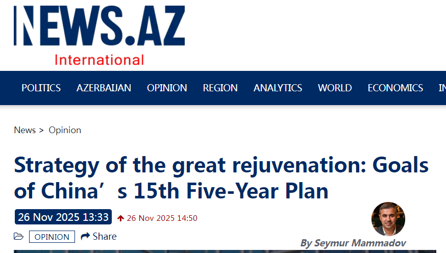 近日,國際專家俱樂部EurAsiaAz主任塞繆爾·馬邁多夫在阿塞拜疆“News.Az”國際新聞網(wǎng)發(fā)表文章稱,在全球進(jìn)入“戰(zhàn)略不確定時(shí)代”的背景下,中國謀定而后動,以罕見的長遠(yuǎn)戰(zhàn)略眼光和堅(jiān)定的執(zhí)行力,給出了截然不同的答案。