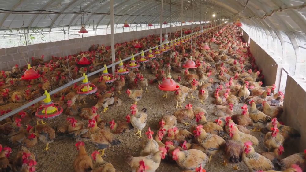 在富源縣的松林養(yǎng)雞場大棚,1200余只雞苗生長狀況良好。當(dāng)?shù)貙㈤e置的礦廠改造為現(xiàn)代化的養(yǎng)雞大棚,松林村委會(huì)周邊600余名村民,在家門口有了一份穩(wěn)定的收入。