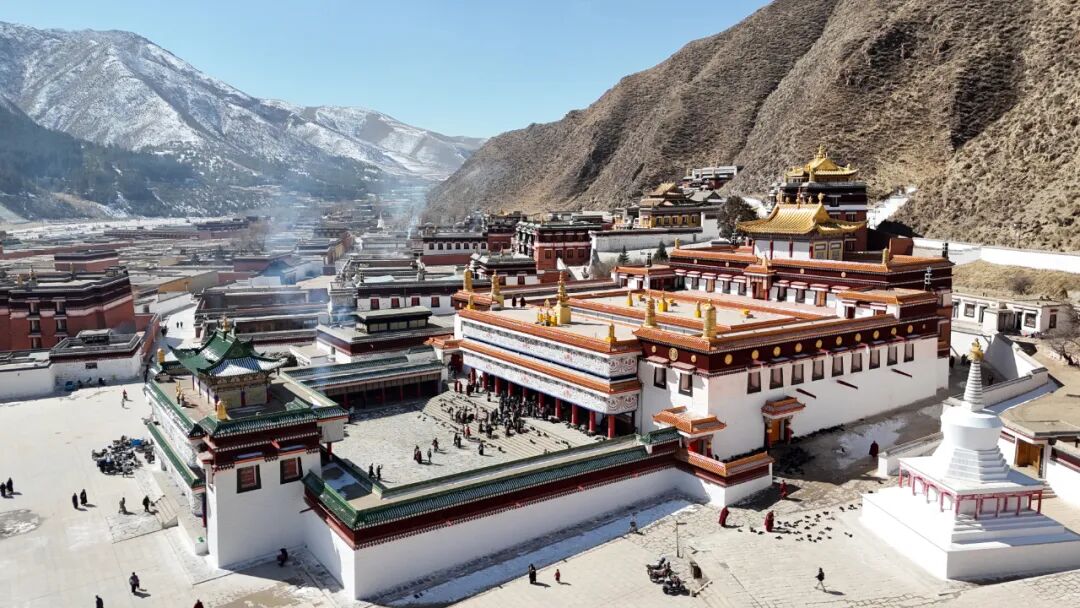 2025年2月28日,航拍的甘肅甘南拉卜楞寺。中新社記者 九美旦增 攝