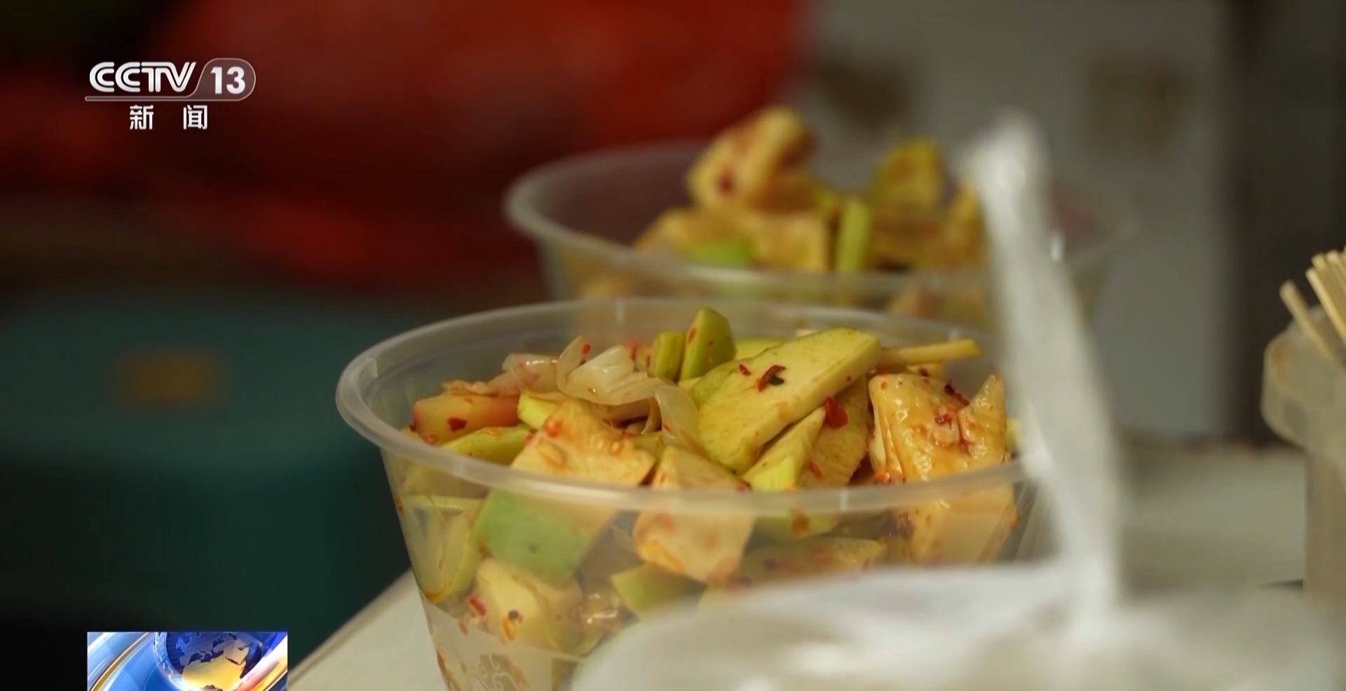 總臺(tái)記者 楊雪:街頭巷尾,最具廣西特色的還得是酸嘢,而紅糖酸嘢更是將酸、甜、辣、咸完美融合。將新鮮芒果、菠蘿、番石榴等食材切塊,加入紅糖粉和秘制調(diào)料攪拌均勻,再根據(jù)口味加入辣椒粉,紅糖的蜜甜與水果的清甜結(jié)合,吃起來別有一番風(fēng)味。