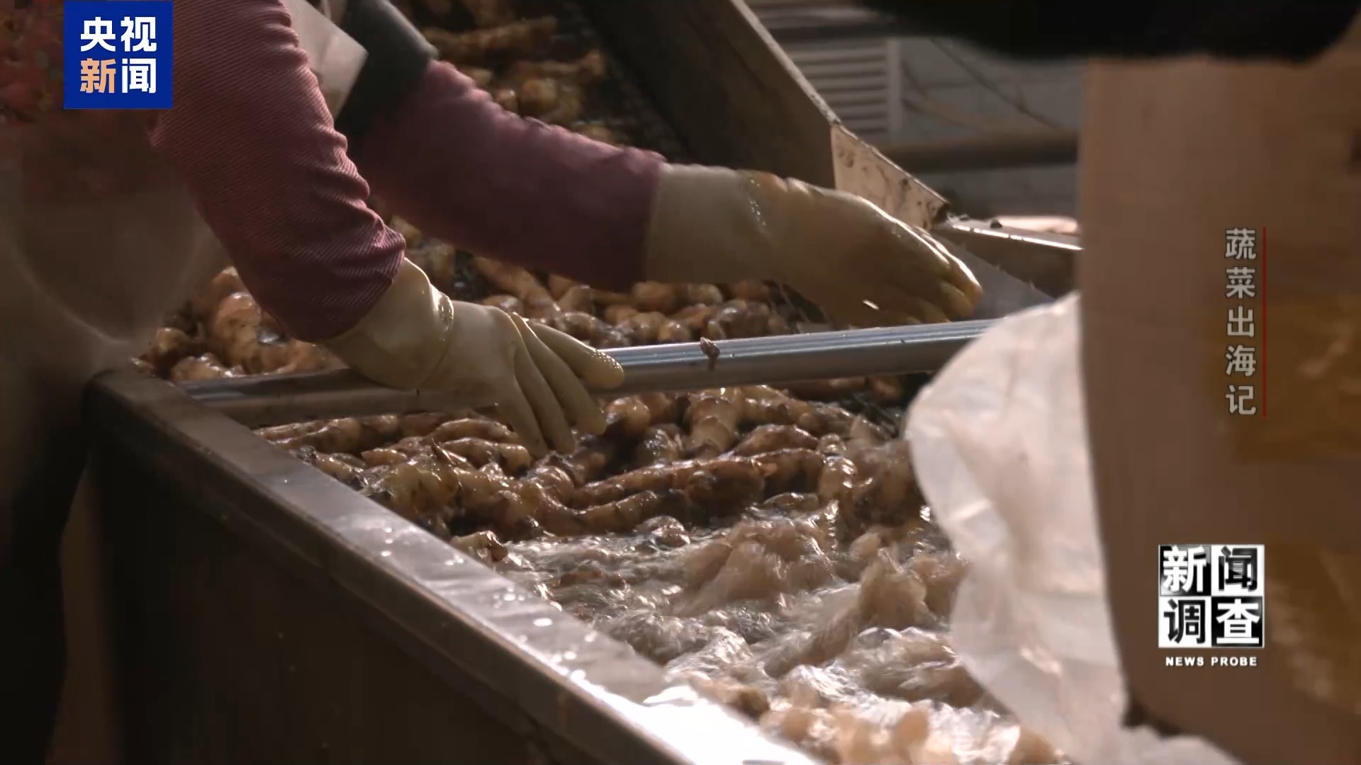 山東三濤食品有限公司副總經(jīng)理 劉鵬:我們一個(gè)月平均大約發(fā)100個(gè)貨柜,發(fā)往歐洲、美國(guó)、比利時(shí)、瑞士,美西生姜三分之一都是我們供應(yīng)的,也就是說(shuō)我們?cè)诿牢鲹碛幸欢ǖ亩▋r(jià)權(quán)。