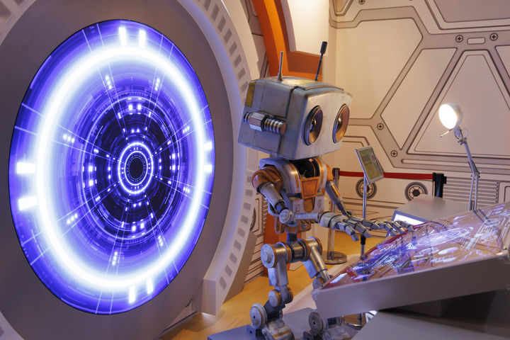 2025年6月28日在中國(guó)科學(xué)技術(shù)館《Project X:星際友好計(jì)劃》航天科幻擴(kuò)展現(xiàn)實(shí)(XR)大空間體驗(yàn)展拍攝的人工智能機(jī)器人星啟8號(hào)。新華社記者 金立旺 攝
