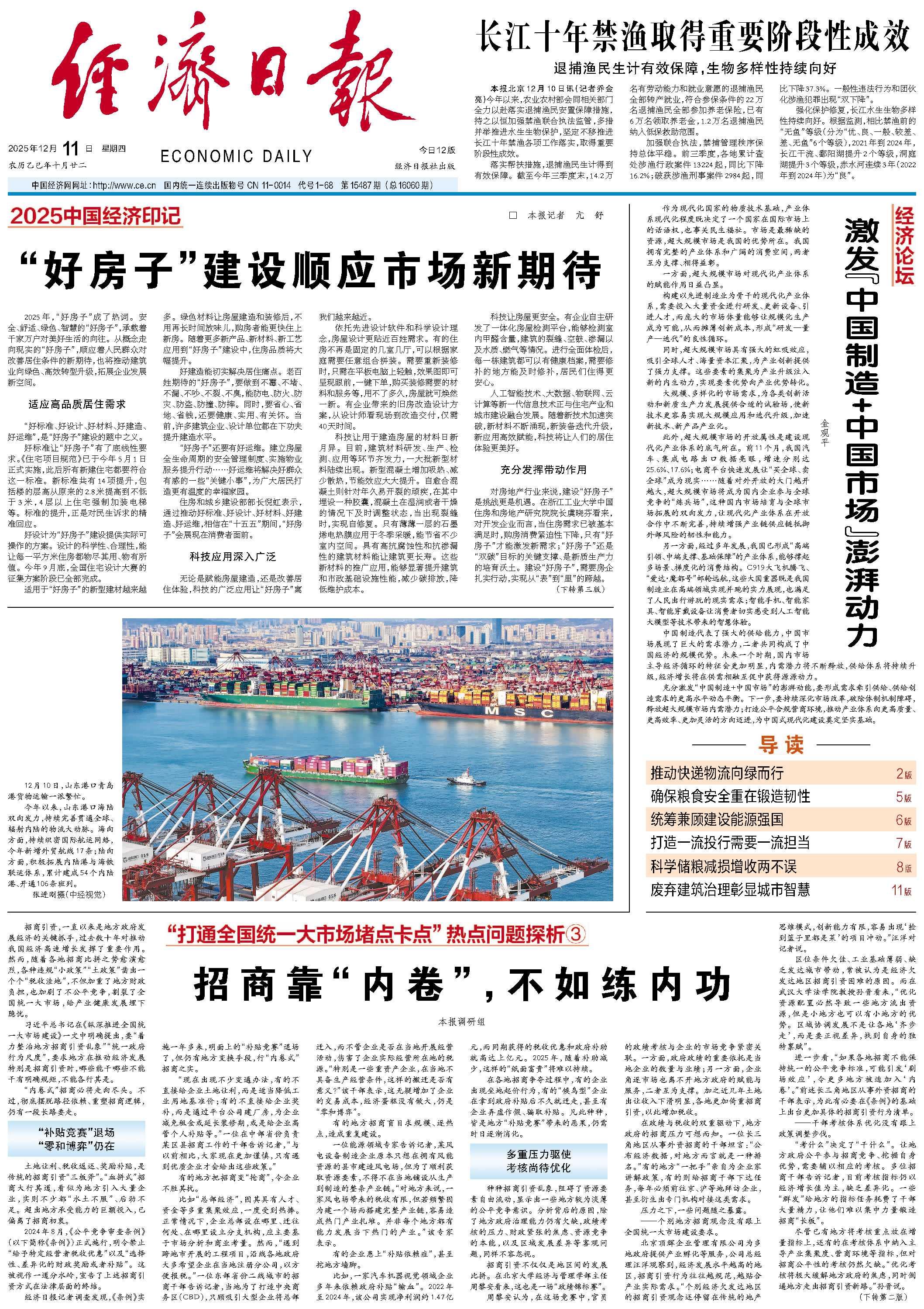 此外,超大規(guī)模市場的開放屬性是建設(shè)現(xiàn)代化產(chǎn)業(yè)體系的底氣所在。前11個月,我國汽車、集成電路出口數(shù)據(jù)亮眼,增速分別達(dá)25.6%、17.6%;電商平臺快速發(fā)展讓“買全球、賣全球”成為現(xiàn)實……隨著對外開放的大門越開越大,超大規(guī)模市場將成為國內(nèi)企業(yè)參與全球競爭的“練兵場”,這種國內(nèi)市場培育與全球市場拓展的雙向發(fā)力,讓現(xiàn)代化產(chǎn)業(yè)體系在開放合作中不斷完善,持續(xù)增強產(chǎn)業(yè)鏈供應(yīng)鏈抵御外部風(fēng)險的韌性和能力。