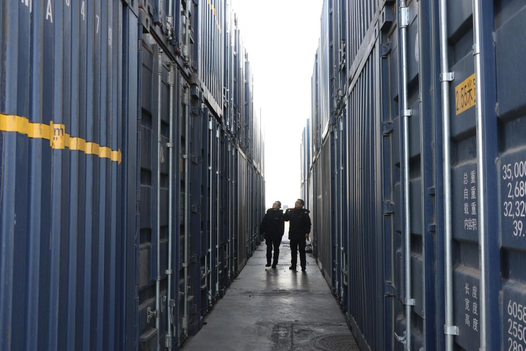 烏拉特海關(guān)關(guān)員巡查監(jiān)管作業(yè)場所進(jìn)口煤炭倉儲情況。新華社發(fā)