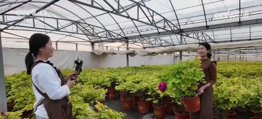 除了線下銷售渠道,工作人員也在大棚里架起手機(jī),通過網(wǎng)絡(luò)直播把牡丹賣到全國各地。