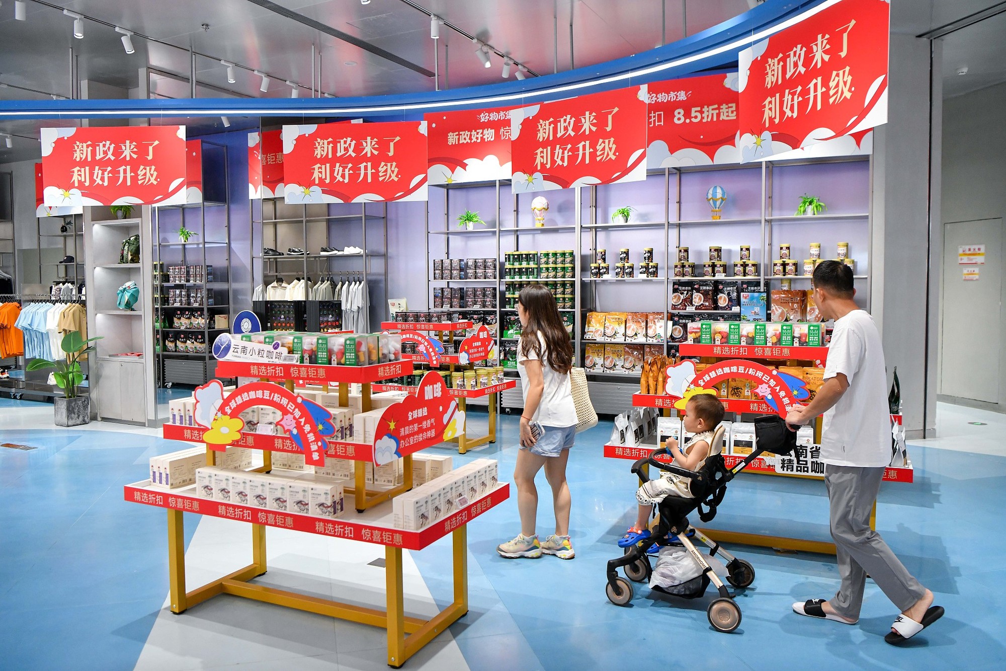 海南???,顧客在免稅城選購商品。