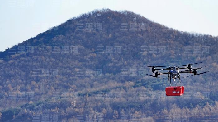 2025年12月24日,大連金普新區(qū),無人機(jī)配送模式“飛”越擁堵。