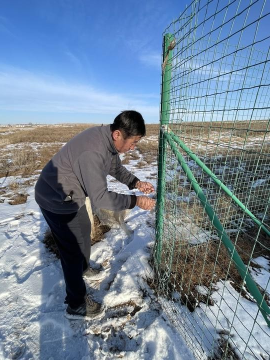 高萬東在修復損壞的長城保護圍欄。新華社發(fā)