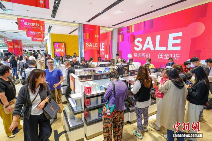 圖為元旦假期,cdf海口國(guó)際免稅城迎來購(gòu)物熱潮,眾多游客前來選購(gòu)心儀商品。 中新網(wǎng)記者 駱云飛 攝
