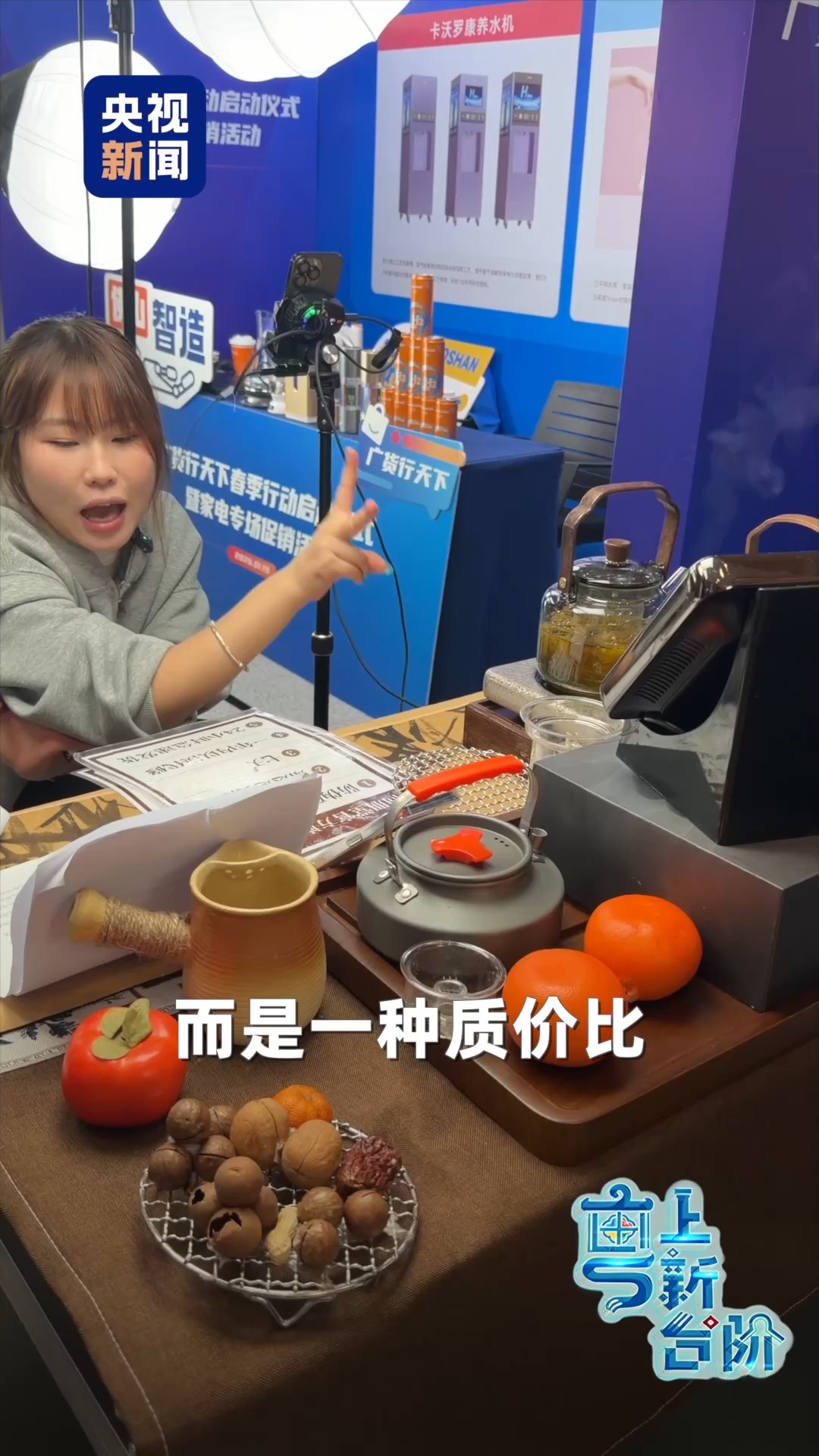 這次的活動(dòng)現(xiàn)場(chǎng),幾乎看不到琳瑯滿目的產(chǎn)品陳列,取而代之的是一臺(tái)臺(tái)手機(jī),一個(gè)個(gè)熱鬧的直播間。