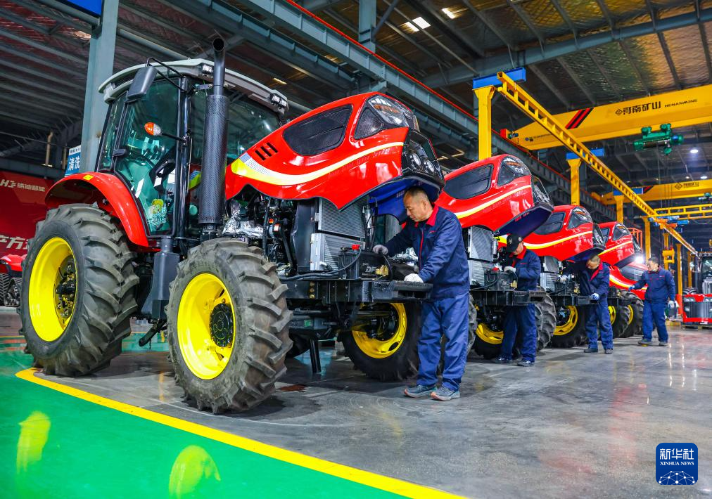 1月19日,在江蘇省江都高新技術(shù)產(chǎn)業(yè)開發(fā)區(qū)的金世紀(jì)(江蘇)智能科技有限公司,工人對即將出售的拖拉機(jī)進(jìn)行檢查。新華社發(fā)(任飛攝)