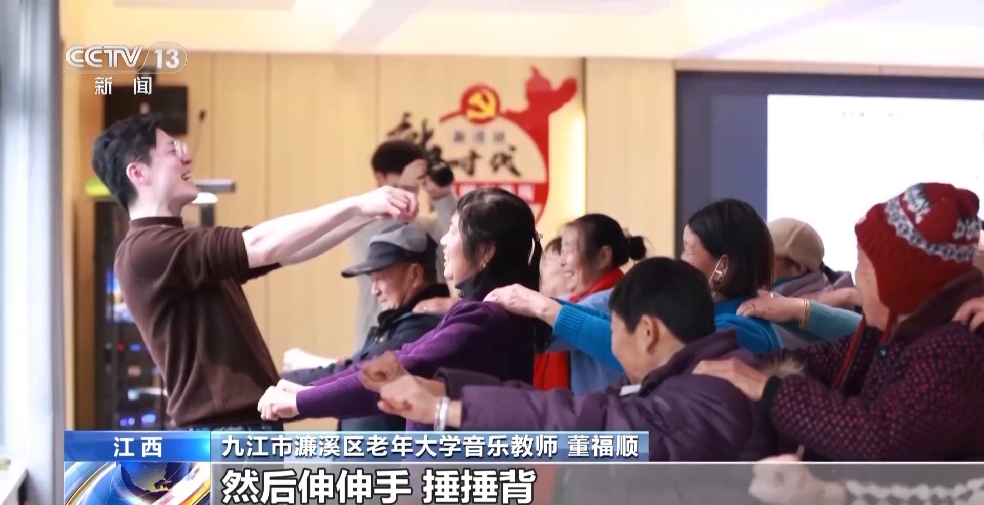 九江市濂溪區(qū)老年大學(xué)音樂教師 董福順:我覺得音樂它是有律動的,結(jié)合那個(gè)律動再加這些動作,然后伸伸手、捶捶背,我覺得這不就是生活中的動作,你把它再帶到課堂里邊兒,帶到音樂里邊兒,課堂就不一樣。